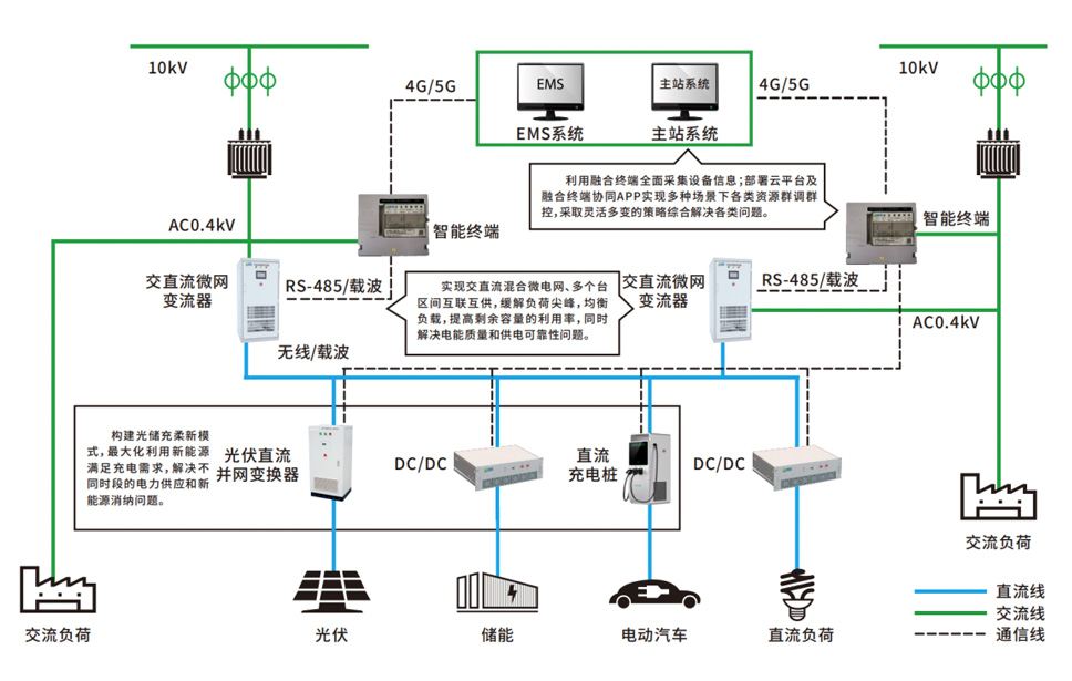 该方案能够解决台区配变容量不足及过载、配电网末端低电压或分布式光伏引起的过电压、新能源消纳问题以及电网故障时台区所属负荷供电可靠性。同时通过柔性直流线路可以将不同电压等级台区进行互联,易于台区管理。